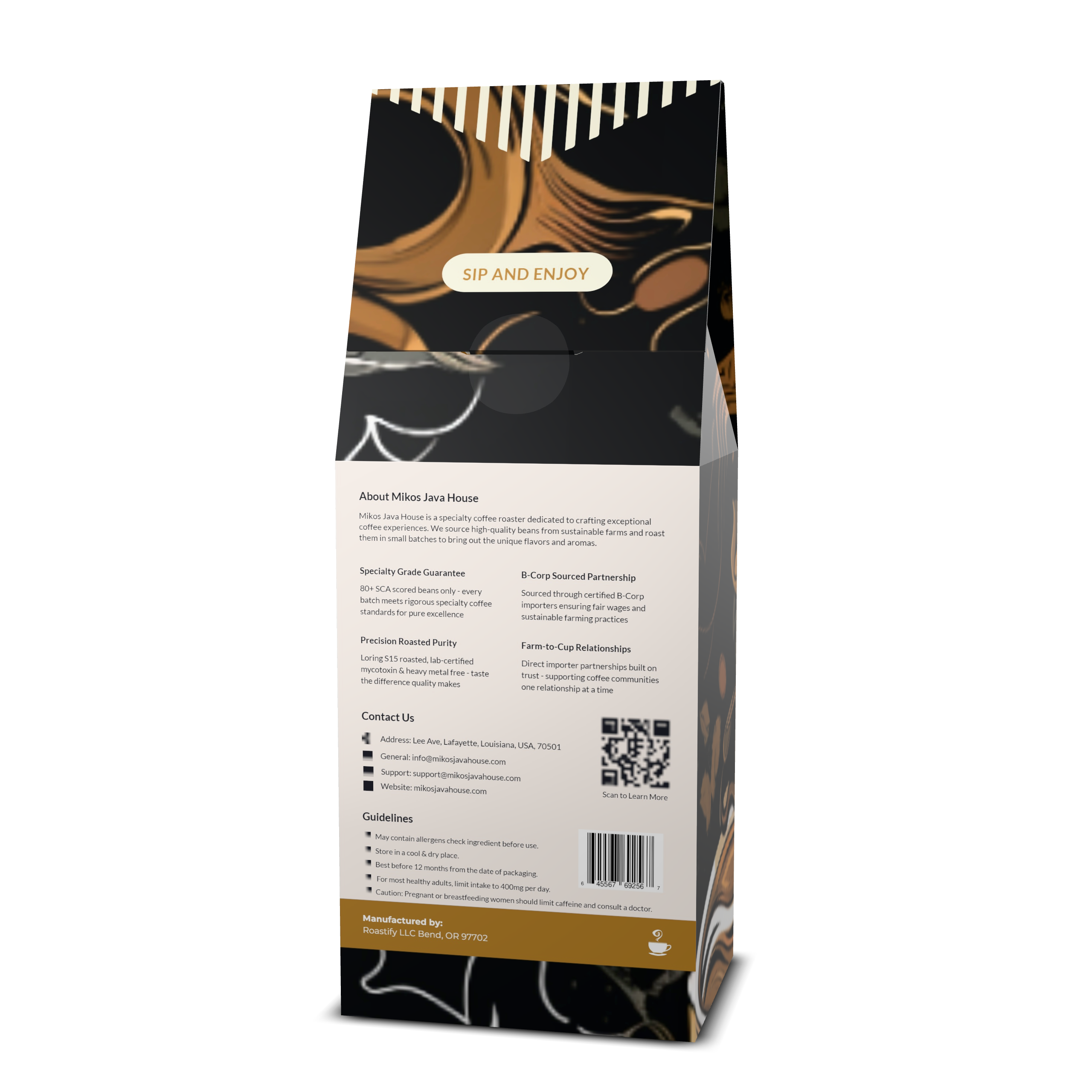 Our signature four-country blend combining Brazilian chocolate, Colombian smoothness, Guatemalan brightness, and Ethiopian complexity. Medium roast with harmonious toffee, dark chocolate, and citrus notes. Perfectly balanced and energizing.